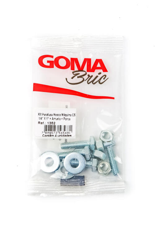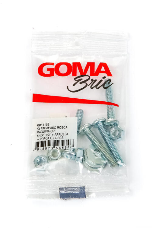 CONJUNTO PARAFUSO ROSCA MAQUINA CP 1/4" X 1.1/2" + ARRUELA + PORCA C/ 04 PCS