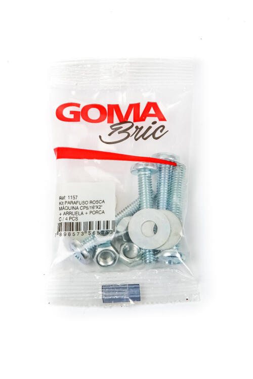 CONJUNTO PARAFUSO ROSCA MAQUINA CP 5/16" X 2" + ARRUELA + PORCA C/ 04 PCS