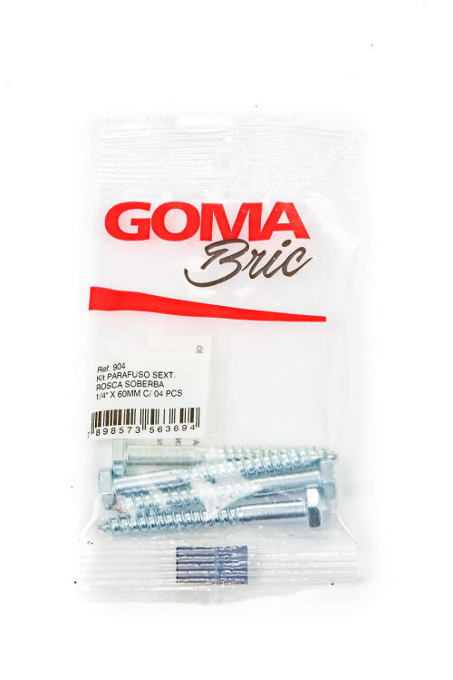 KIT PARAFUSO SEXT. ROSCA SOBERBA 1/4 X 60MM C/ 04PCS