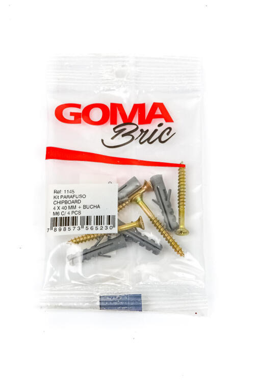 KIT PARAFUSO CHIPBOARD 4 X 40 MM+ BUCHA M6 C/ 04 PCS