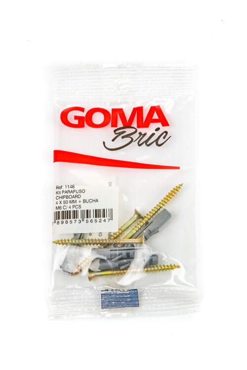 KIT PARAFUSO CHIPBOARD 4 X 50 MM+ BUCHA M6 C/ 04 PCS